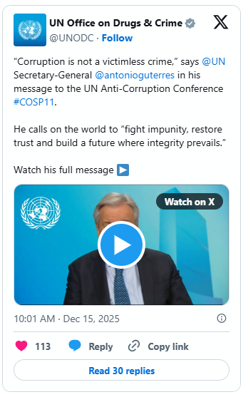 Corruption costs lives and livelihoods: Why this week’s UN summit in Doha matters