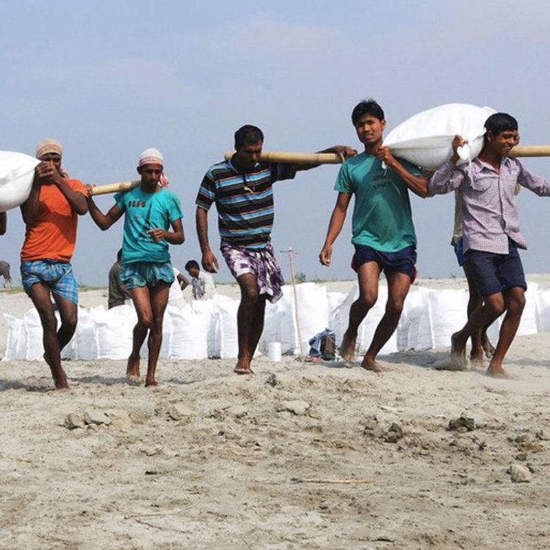 ADB/Rakesh Sahai. Sand bags are being placed on the banks of a river in India to provide protection against storm surges and floods.