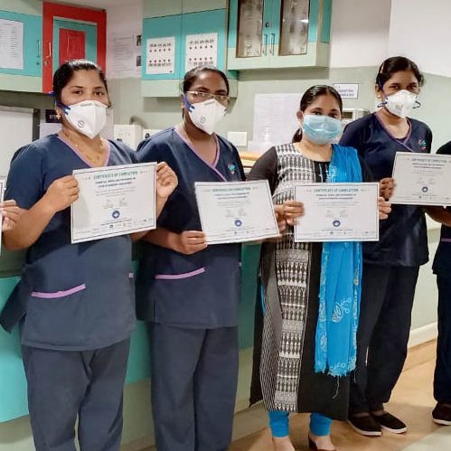 Health workers participating in UN Women India’s Second Chance Education programme display their “Certificate of Completion Essential Upskilling for Nurses on COVID-19 Pandemic Management”. © UN Women