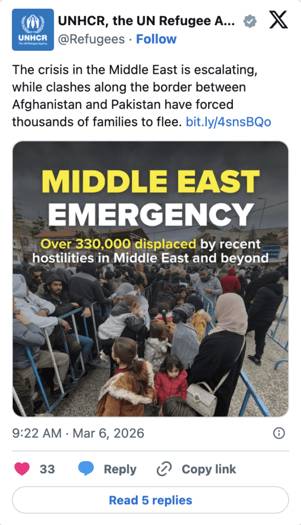UNHCR Director for Emergencies Ayaki Ito told journalists in Geneva that the conflict is triggering significant population movements across the region and into Southwest Asia.