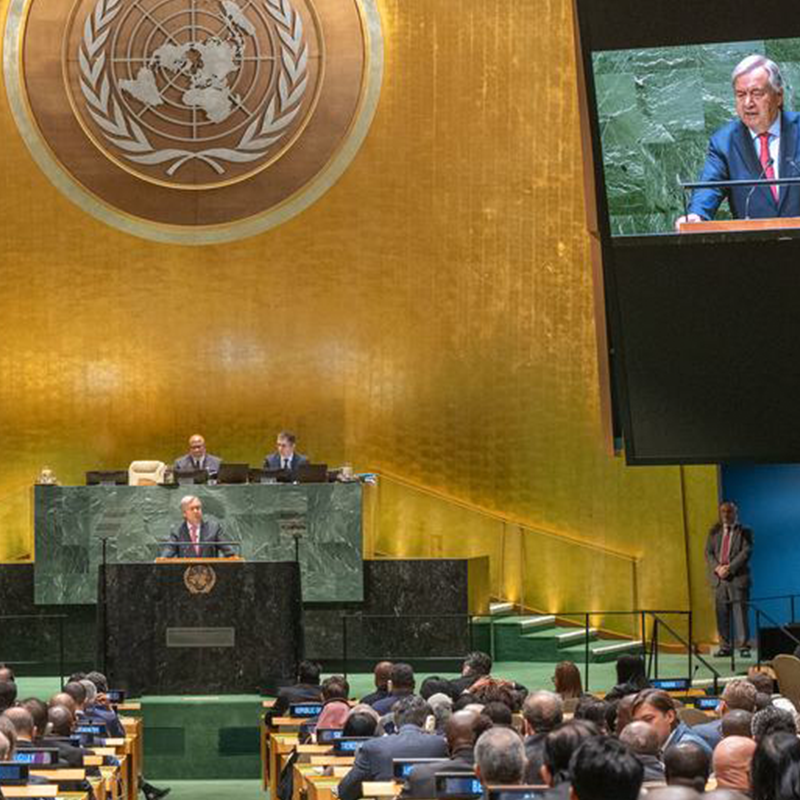 UN Photo/Cia Pak. Secretary-General António Guterres addresses the opening of the general debate of the UN General Assembly’s 78th session.