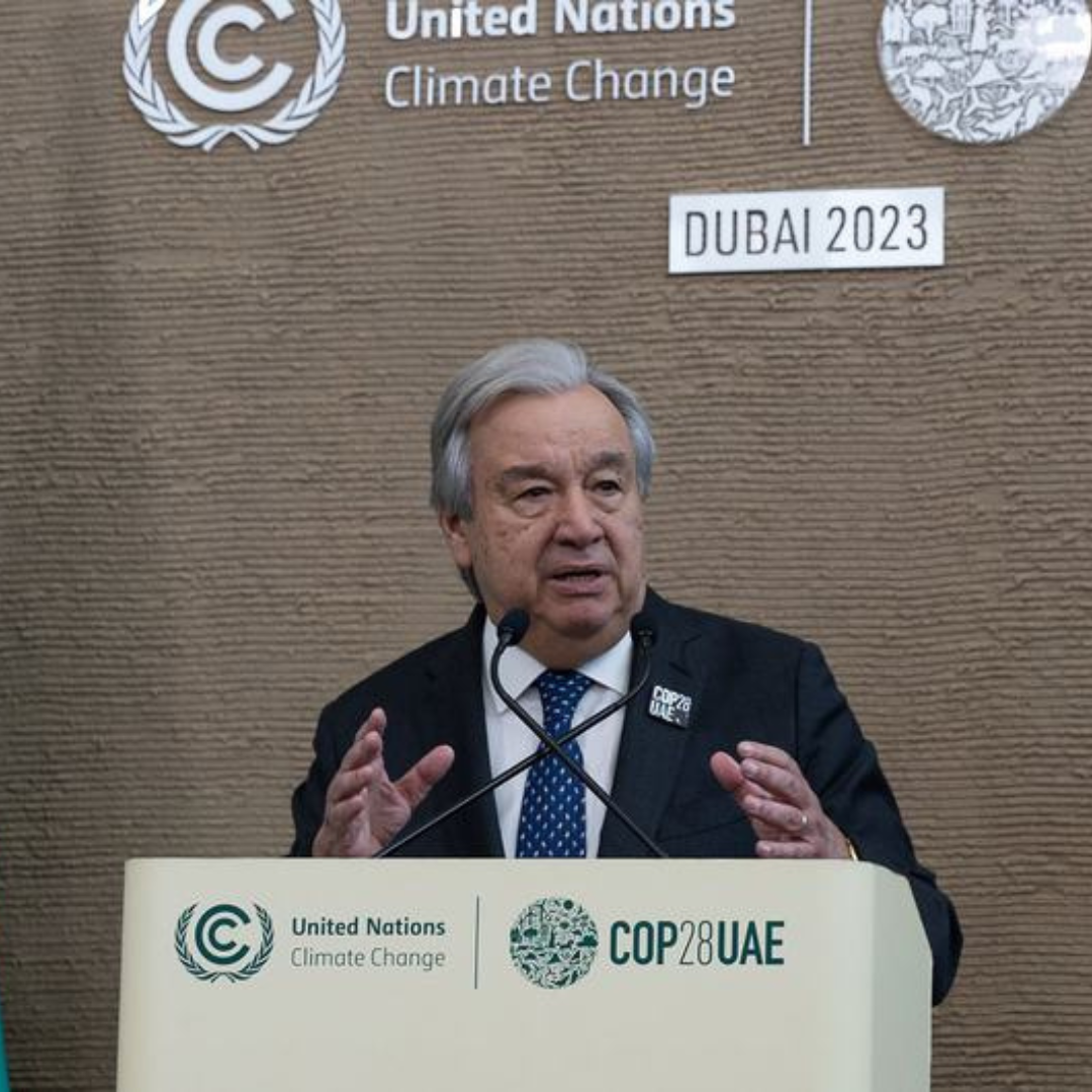 UNFCCC/Kiara Worth | UN Secretary-General António Guterres speaks to reporters at Expo City, the venue for the UN climate change conference, COP28, in Dubai, United Arab Emirates.