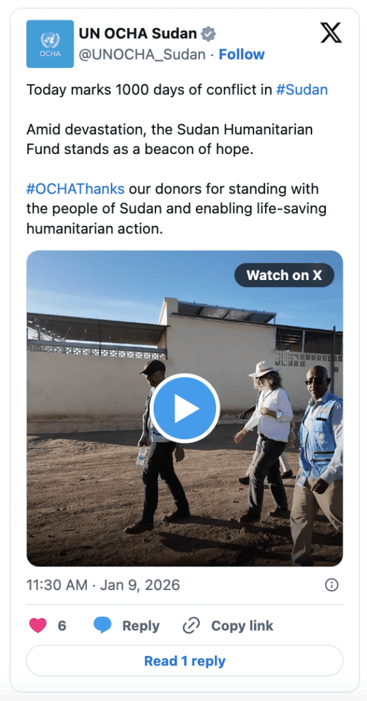 In light of this reduced financial support, for 2026, OCHA aims to assist 20 million people out of the nearly 34 million people believed to be in need of humanitarian support in Sudan. The plan has been costed at $2.9 billion.