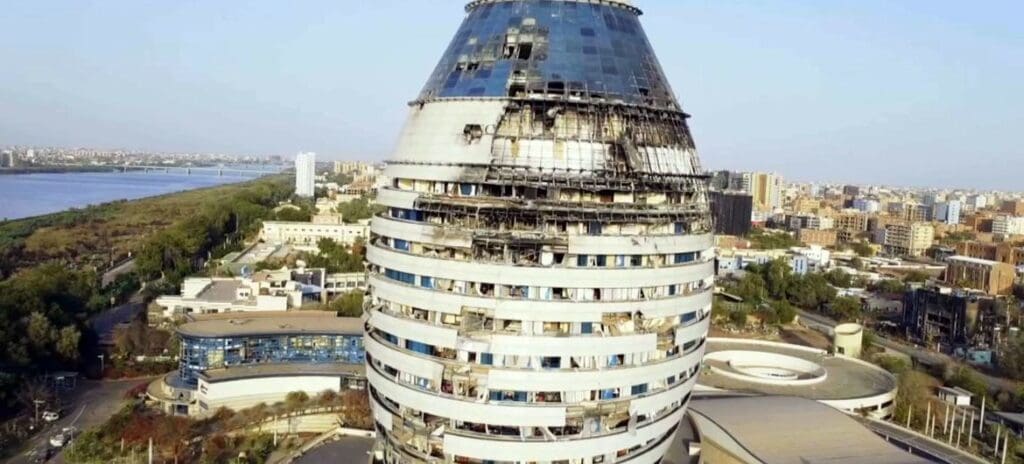 Just one of many buildings in the Sudanese capital, Khartoum, impacted by the war that erupted between the Sudanese Armed Forces and paramilitary Rapid Support Forces in April 2023.